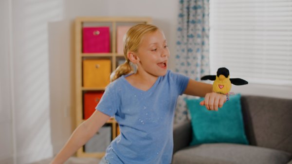 Ptáčka si můžeš připnout na ruku a užít si s ním spoustu zábavy.