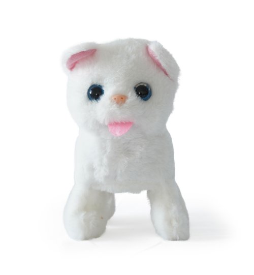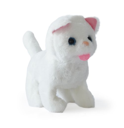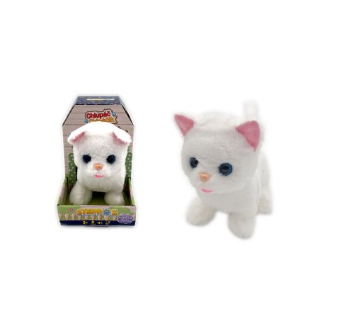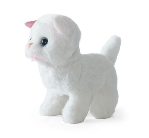 Kočička na baterie, která chodí, mňouká a hýbe ocáskem.
