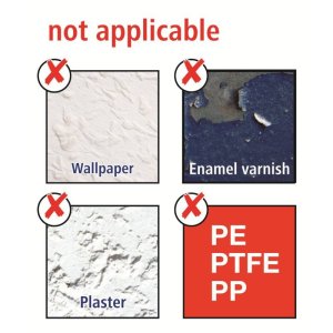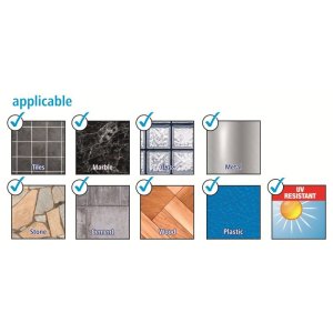• Funguje na obkladech, kovu, přírodním kameni, mramoru, betonu, dřevu, sklu a mnoha druzích plastů