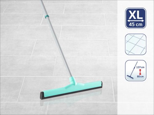 Stěrka Leifheit - s teleskopickou tyčí na dlažbu, classic Efektivní stírání vody beze šmouh díky dvojité gumové stěrce Šířka stěrky 45 cm Teleskopická tyč (80 - 133 cm)