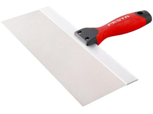 materiály: z vysoce kvalitní a pružné nerez oceli, rukojeť je ergonomicky tvarovaná, gumový povrch Špachtle se používá zejména k nanášení a roztírání stavebních hmot a materiálů jako např. sádra, tmel, stěrka na velké plochy.