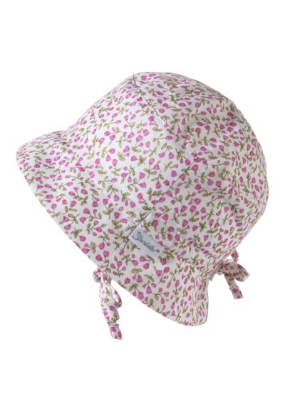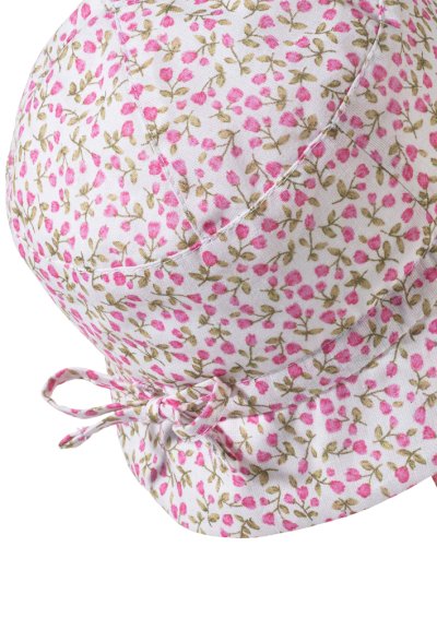 Lehká bavlněná tkanina se vyznačuje jemnou strukturou plátna. Jemné květy jsou v dívčí módě vždy trendy a samozřejmě se perfektně kombinují s barevným a vzorovaným dětským oblečením. Mírně zvlněný okraj kloboučku chrání oči před oslňujícím slunečním zářením. Klobouček je vybaven šňůrkami na zavazování pod krkem, což ocení každá malá princezna, která nechce aby jí klobouček padal z hlavičky. UV filtr chrání hlavičku před škodlivým slunečním zářením.
