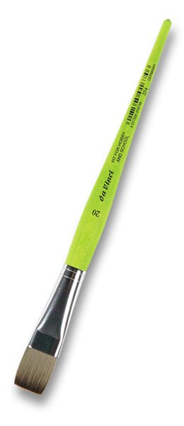 šedé, VELMI ELASTICKÉ SYNTETICKÉ VLÁKNO S VYSOKOU ABSORPČNÍ SCHOPNOSTÍ, * bezešvá hliníková objímka, * matně zelená násadka s nově vyvinutou povrchovou strukturou, * pro opravdové malování a dokonalé nanášení barev, Díky speciálně vyvinutému syntetickému vláknu se jedná o malířský štětec pro školy a hobby malíře, který vás zaujme nejen zajímavým vzhledem, ale i atraktivní cenou. Tento, inovativní výrobek nabízí lepší výkon než tradiční školní štětec s přírodními vlasy. A to díky schopnosti absorbovat barvy., 4 RADY, JAK UCHOVÁVAT ŠTĚTEC, ABY VÁM DLOUHO VYDRŽEL:, * Štětce vždy pečlivě omyjte. Akrylové a akvarelové barvy vymyjete ze štětce vodou. Na olejové barvy použijete terpentýn nebo benzín. Nebo můžete použít i mýdlo. Štětce pečlivě, vysušte a uhlaďte do původního tvaru., * Nenořte štětec do barvy až přes hliníkovou objímku. Právě ve spojení štětin a objímky je místo, které se nejhůře vymývá., * Jestliže štětce uchováváte v nádobě, tak vždy je mějte štětinami nahoru., * Některé štětce koupíte i s plastovým krytem. Ten si ponechte. Vždy, když štětec po malování vymyjete a osušíte, tak ho vložte do tohoto krytu. Udržíte tak tvar štětin a, ochráníte je před prachem., TIP: POTŘEBUJETE SE ZORIENTOVAT VE VELIKOSTECH ŠTĚTCŮ? POMŮŽEME VÁM NA NÁŠEM BLOGU ŠKOLNÍSVĚT.CZ.