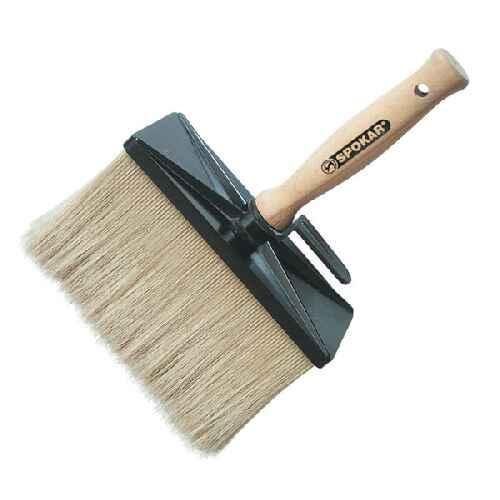 Malířská hranatá štětka s dřevěným držadlem. Má dřevěné držadlo, čistou štětinu.