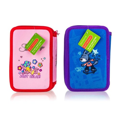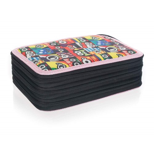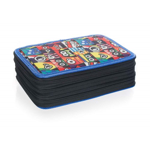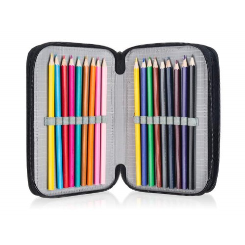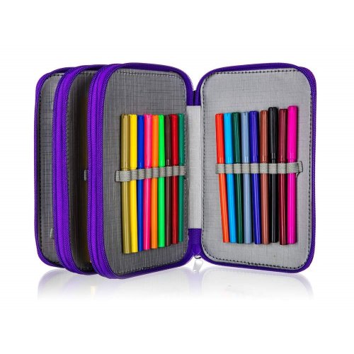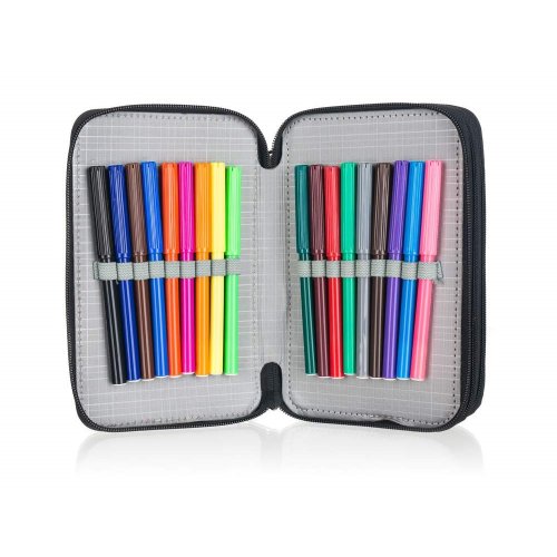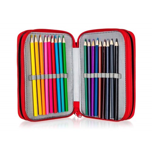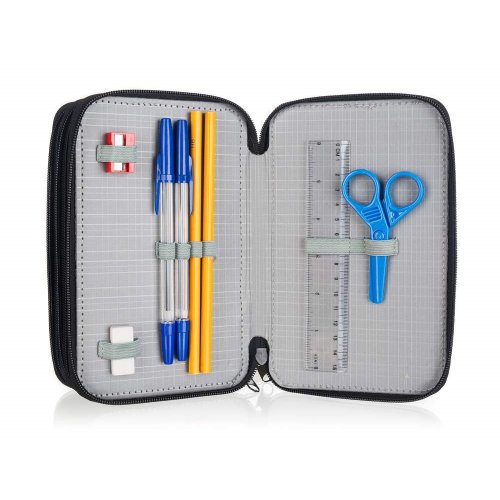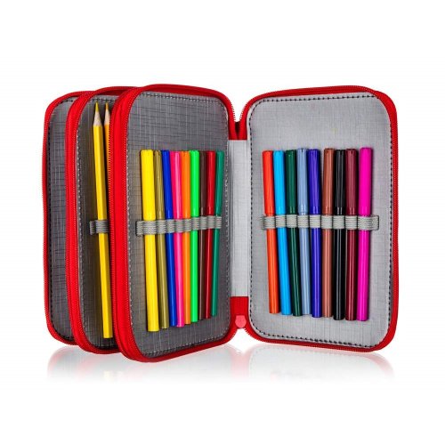 Naplněný třípatrový penál obsahuje kompletní výbavu, kterou bude malý školák potřebovat: 18 pastelek, 18 fixů, 2 jednorázové propisky, tužku, pravítko, gumu, ořezávátko a nůžky. Každé patro má samostatné uzavírání na zip. Rozměr penálu: 20,5 x 12,5 x 7 cm.