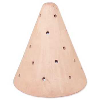 Keramické stínítko kuželovitého tvaru s otvory. Průměr: 11 cm, výška 13 cm.