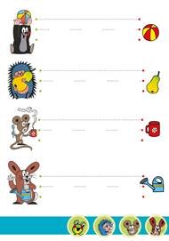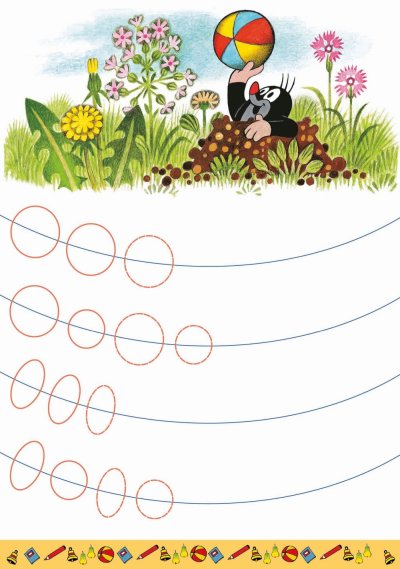 12 stran včetně obálky , součástí výrobku stíratelný popisovač modré či černé barvy , lesklý povrch zaručuje opakovatelnost , sešit slouží k opakovanému nácviku základních tvarů, čar, obloučků, jednoduchých uvolňovacích cviků, jednotažek, tedy příprava dítěte na výuku psaní předstupeň výrobku Procvičuj si psaní písmen a číslic, vše vloženo v transparentním sáčku