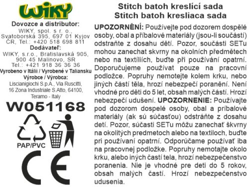Stitch batoh kreslící sada. Velikost batohu 31 cm. Obsahuje omalovánky, vyskakovací obrázky k vykreslení, fixky, nálepky. Batoh má nastavitelné popruhy a poutko pro zavěšení.