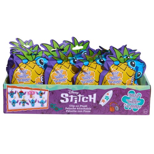 Sběratelký miniplyš s klipsem Disney Stitch. V každém sáčku je ukryt jiný plyšák. Celkem 8 různých variant, například s kytarou, fotbalovým míčem, šnorchlovací maskou nebo je tu dokonce růžový plyšák Angel, který má potítko a činku. Vyrobeno z velmi kvalitního plyše, opatřeno klipem pro připnutí na batoh, poutko u kalhot či klíče. Vhodné pro děti od 2 let