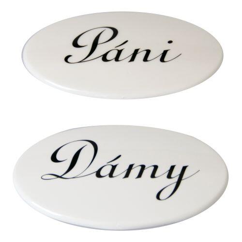 Sada dveřních štítků s popisem DÁMY + PÁNI slouží k označení dveří bytového jádra.