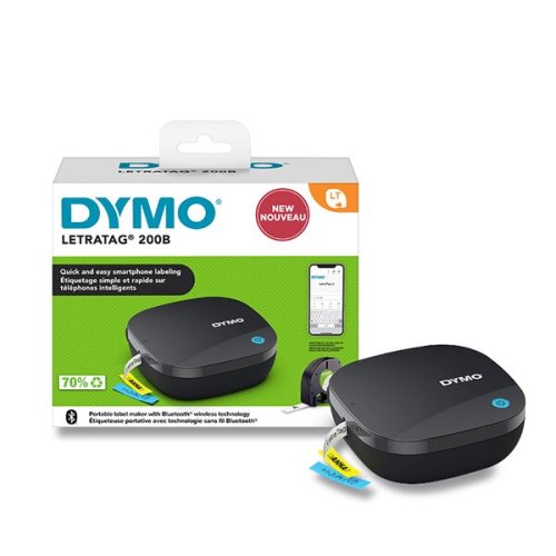 technologie přímého termálního tisku – není třeba inkoustové náplně či tonery, * napájení 4 AA bateriemi (není součástí balení), * kompatibilní s DYMO originálními LetraTag pásky - papírové, plastové, metalické a nažehlovací šíře 12 mm, * obal vyrobený z recyklovaného materiálu s certifikací FSC