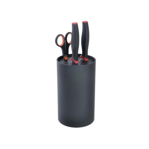 Stojan na nože Orion - kulatý, štětiny, černý Stojan na nože s plastovými štětinami brání poškrábání vložených nožů i dalších kuchyňských pomůcek - nůžky, škrabky Při čištění štětiny jednoduše ze stojanu …