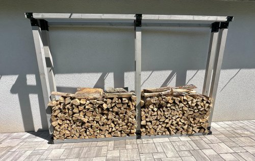 Stojan na štípané palivové dřevo je určený pro dobré prosychání dřeva, konstrukce je vyrobena s přáškovou povrchovou úpravou. Dřevěné spojnice a bočnice jsou pouze ilustrační, nejsou součástí zboží.