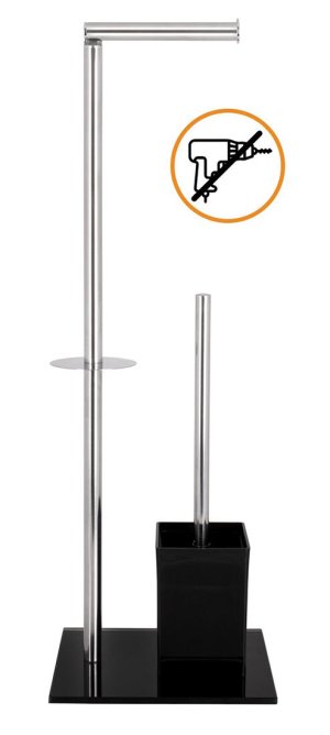 Volně stojící WC stojan, držák na toaletní papír, nerezová ocel, sklo, ABS plast a PP.