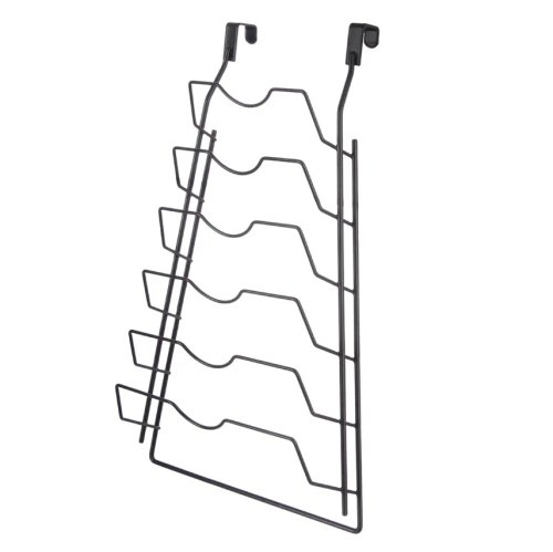 Stojan na poklice uloží do kuchyňské skříňky přehledně až 6 poklic různé velikosti (cca od velikosti 14 cm do cca 28 cm). Nemusíte ho složitě připevňovat, stačí ho pověsit na dvířka skříňky. Možné využít také na uložení krájecích prkének a podložek. Drát s povrchovou plastovou úpravou - plast PP. Rozměry 47 x 27.5 x 9 cm, na max. sílu dvířek 2.5 cm. EAN 8592381226718