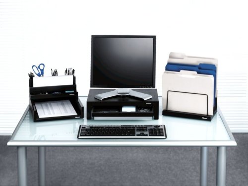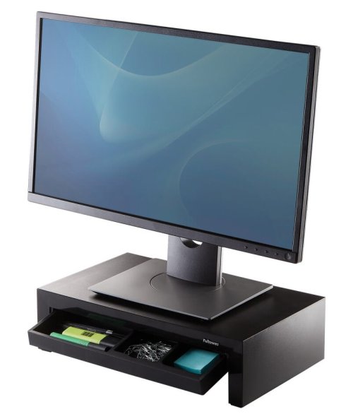 Praktický stojan pro monitor zvedá obrazovku na úroveň očí, čímž zmírňuje svalové napětí ramen a šíje. Umožňuje regulaci výšky od 11 do 15 cm. Díky svému praktickému designu ušetří místo na vašem pracovním stole. Propisovací tužky, obálky a další dokumenty lze uložit do šuplíku v přední části. Klávesnici či notebook lze poté schovat přímo pod samotný stojan. V klidu si také můžete odložit kávu, protiskluzové gumové nožičky se postarají o perfektní stabilitu.