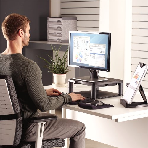 • usnadňuje organizaci pracovního prostoru • moderní design • určen pro LCD a TFT monitory o maximální hmotnosti do 36 kg • tři sady vzpěr umožňují nastavení pěti různých výšek stojanu: 64 až 165 mm • otvory v zadní části usnadňují vedení kabelů • odolná plastová základna • ze 100% je vyroben z recyklovaných materiálů • snadná instalace bez nutnosti použití nástrojů