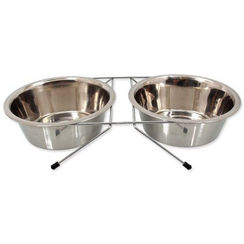 Nerezové misky ve stojánku pro malé psy a kočky.