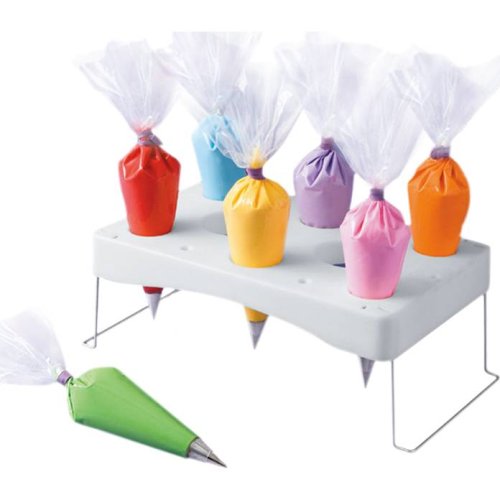 Stojánek na cukrářské sáčky je velmi užitečnou pomůckou. Pomůže zachovat čistou pracovní plochu.