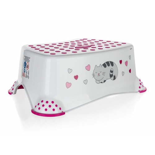 Stolička / schůdek CAT je možno použít jako sedátko nebo jako stupínek pro děti. Vhodné využití v koupelně či toaletě, kdy dětem usnadní přístup k těžce dostupným místům. Na spodní i vrchní straně stoličky je protiskluzová úprava, takže je stolička bezpečnější.