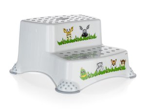 Stolička / dvojschůdek JUNGLE je možno použít jako sedátko nebo jako stupínek pro děti. Vhodné využití v koupelně či toaletě, kdy dětem usnadní přístup k těžce dostupným místům. Na spodní i vrchní straně stoličky je protiskluzová úprava, takže je stolička bezpečnější.