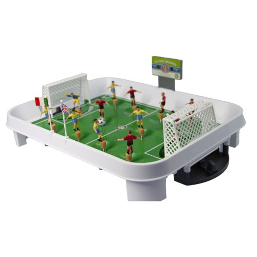 Pojď si zahrát! Vyhraj zápas se svým týmem! Užij si spoustu zábavy se svým kamarádem, hra je určena pro dva hráče. Cvrnkací fotbálek: zatáhni hráče směrem dozadu, pusť hráče a vystřelí míč. Dej gól a vyhraj. Branku lze posouvat.