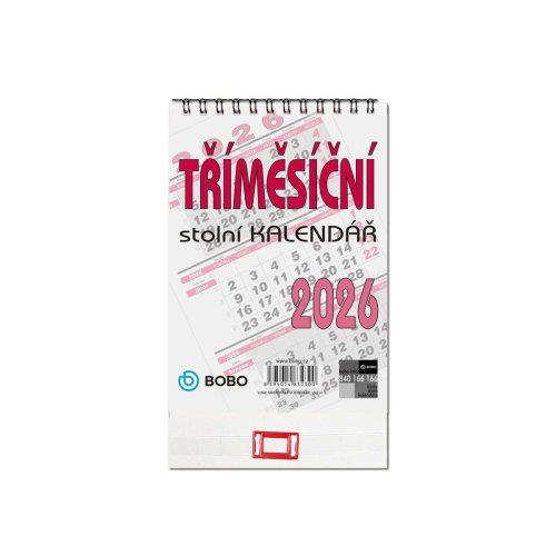 • Rozměr 11 x 15,6 cm (při složení kalendáře na stole 11 x 19,1 cm)<br> • Tříměsíční kalendárium<br> • Anglicko-české kalendárium<br> • Posuvné červené okénko pro přehled aktuálního dne<br> • Černá dvojitá kroužková vazba Twin Wire pro lehké přetáčení stránek