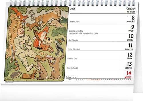 Přeneste se prostřednictvím unikátních ilustrací Josefa Lady do starých časů a nechte na sebe dýchnout kouzlo idylického života na venkově. Týdenní stolní kalendář s českými jmény obsahuje také svátky, památné dny, měsíční fáze a přehled na celý rok 2026 a 2027.