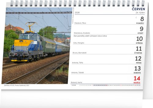 Jezdíte rádi vlakem, máte svou sbírku vláčků, nebo jste alespoň obdivovateli jejich krásy? Možná vám však chybí stolní kalendář s fotografiemi vlaků a železnice. České týdenní kalendárium s prostorem pro vaše poznámky obsahuje jména, svátky a další významné dny.