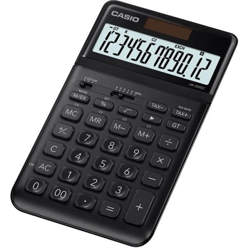 Designový stolní kalkulátor Velký, přehledný a naklápěcí 12ti místný LCD displej Výpočet procent Výpočet DPH Přepočet měny Výpočet % zisku Celkový součet Výřez Nastavení desetinných míst Tlačítko opravy zadání Tlačítko dvojité nuly Nezávislá paměť Napájení: Duální solár/bateriové Rozměry: 10,9 x 1,1 x 18,4 cm