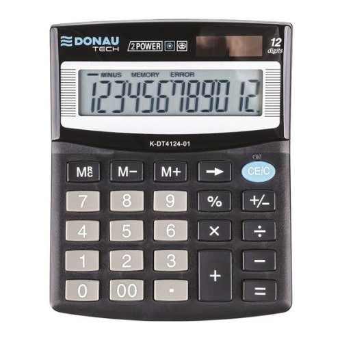 Stolní kalkulačka Nakloněný display Funkce: procenta Funkce automatického vypnutí 12-místný displej Barva: černá Materiál: plast včetně tlačítek Rozměry: 125 x 100 x 27 mm Ideální do kanceláře na váš …