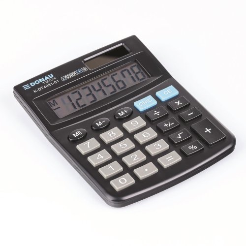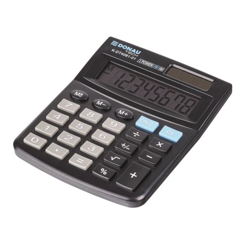 Stolní kalkulačka Nakloněný display 8-místný displej Funkce: odmocnina, procenta Funkce automatického vypnutí Barva: černá Materiál: plast včetně tlačítek Rozměry: 134 x 104 x 17 mm Ideální do kanceláře …