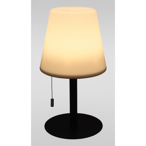Moderní přenosné svítidlo určené pro venkovní použití, které kombinuje elegantní design s praktickou funkčností. Tělo z bílého PP materiálu a matně černá kovová patka zajišťují stabilitu i stylový vzhled. Svítidlo nabízí čtyři režimy svícení – teplá bílá, měkká bílá, plynulé střídání barev a pevná barva. Ovládání je snadné pomocí tahacího kabelu. Vestavěná lithium-ion baterie je dobíjecí přes USB-C kabel, který je součástí balení.
