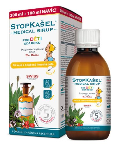 STOPKAŠEL DR. WEISS® PRO DĚTI obsahuje unikátní účinné složení 5 bylinných extraktů, beta-glukanů a selenu. Je určen pro děti již od 1 roku, má výbornou chuť pro příjemné užívání a mohou jej užívat také těhotné a kojící ženy.