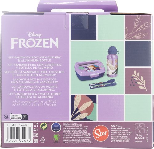 sada obsahuje hliníkovou láhev o objemu 400 ml svačinový box sadu příborů (lžičku a vidličku) bez obsahu BPA