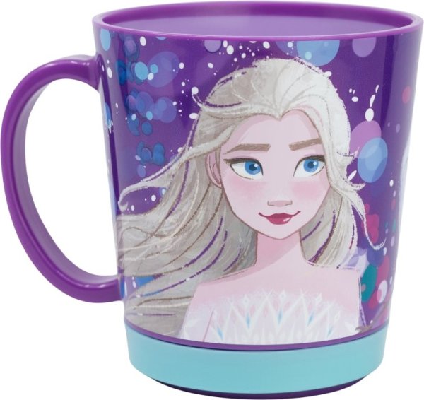 Plastový hrnek s protiskluzovou a protihlukovou úpravou s motivem Ledového království.