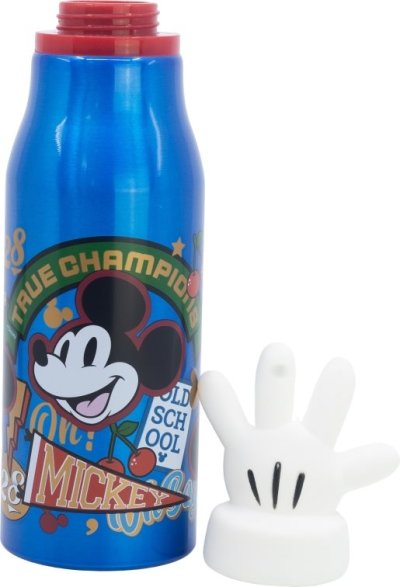 Dětská hliníková láhev na vodu, 690 ml, s figurkou na víčku Mickey Mouse. Odolná hliníková láhev se šroubovacím víčkem, zdobená 3D figurkou oblíbené postavičky z dětských seriálů. Děti ji budou chtít mít stále u sebe.