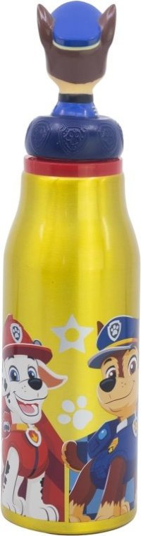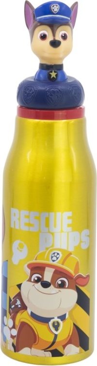 Dětská hliníková láhev na vodu, 690 ml, s figurkou Chase na víčku. Odolná hliníková láhev se šroubovacím víčkem, zdobená 3D figurkou oblíbené postavičky z dětských seriálů. Děti ji budou chtít mít stále u sebe.