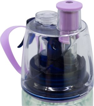 Dětská plastová láhev na vodu s náustkem a rozprašovacím tlačítkem. Vlastnosti: