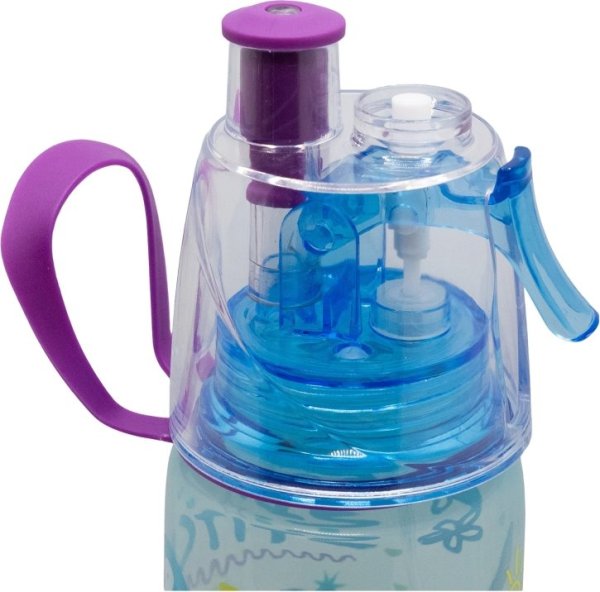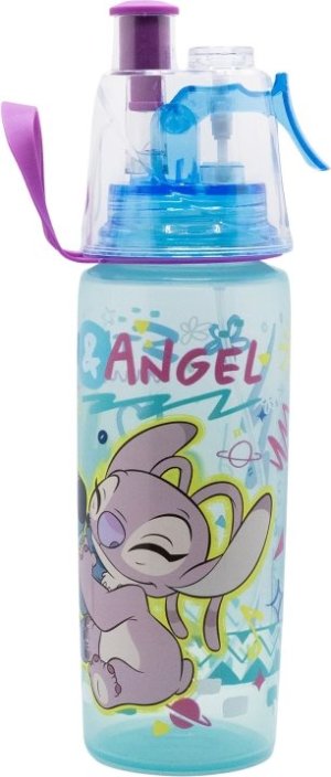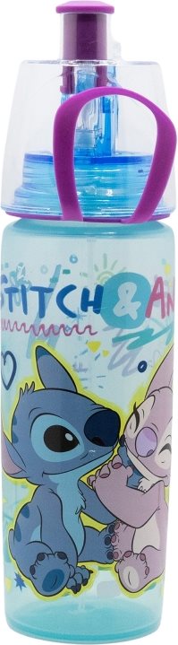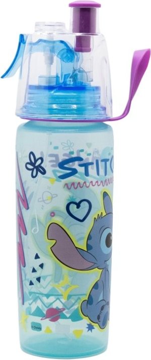 Dětská plastová láhev na vodu s náustkem a rozprašovacím tlačítkem, 575 ml, s motivem Stitche. Dětská plastová opakovaně použitelná láhev s náustkem na pití a tlačítkem pro rozprašování vody v horkém období.