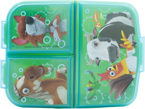 Originální a praktický box na svačinu s více přihrádkami, který si děti mohou s sebou vzít do školy, na hřiště nebo třeba na výlet. Multi box je vyroben z odolného materiálu, vydrží náhodné pády a nárazy při každodenním používání. Tři oddělené přihrádky jsou ideálním řešením pro svačinu o více chodech, které chcete uchovávat zvlášť. V jedné komoře můžete skladovat zdravou zeleninu či ovoce, do druhé připravíte chutný sendvič a do třetí schováte dětem něco dobrého na zub. Box je zdoben atraktivními motivy, děti si ho tak zamilují a rády si ho budou brát všude s sebou. Multi box je vhodný nejen pro ukládání jídla, poslouží i pro úschovu drobných hraček a malých dětských pokladů. Výhody: