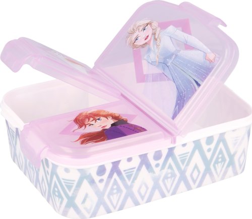 Originální a praktický box na svačinu s více přihrádkami, který si děti mohou s sebou vzít do školy, na hřiště nebo třeba na výlet. Multi box je vyroben z odolného materiálu, vydrží náhodné pády a nárazy při každodenním používání. Tři oddělené přihrádky jsou ideálním řešením pro svačinu o více chodech, které chcete uchovávat zvlášť. V jedné komoře můžete skladovat zdravou zeleninu či ovoce, do druhé připravíte chutný sendvič a do třetí schováte dětem něco dobrého na zub. Box je zdoben atraktivními motivy, děti si ho tak zamilují a rády si ho budou brát všude s sebou. Multi box je vhodný nejen pro ukládání jídla, poslouží i pro úschovu drobných hraček a malých dětských pokladů. Výhody: