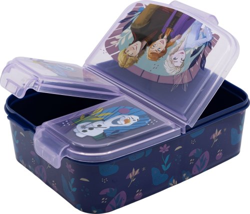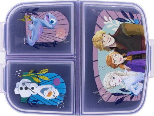 Originální a praktický box na svačinu s více přihrádkami, který si děti mohou s sebou vzít do školy, na hřiště nebo třeba na výlet. Multi box je vyroben z odolného materiálu, vydrží náhodné pády a nárazy při každodenním používání. Tři oddělené přihrádky jsou ideálním řešením pro svačinu o více chodech, které chcete uchovávat zvlášť. V jedné komoře můžete skladovat zdravou zeleninu či ovoce, do druhé připravíte chutný sendvič a do třetí schováte dětem něco dobrého na zub. Box je zdoben atraktivními motivy, děti si ho tak zamilují a rády si ho budou brát všude s sebou. Multi box je vhodný nejen pro ukládání jídla, poslouží i pro úschovu drobných hraček a malých dětských pokladů. Výhody: