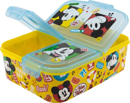 Originální a praktický box na svačinu s více přihrádkami, který si děti mohou s sebou vzít do školy, na hřiště nebo třeba na výlet. Multi box je vyroben z odolného materiálu, vydrží náhodné pády a nárazy při každodenním používání. Tři oddělené přihrádky jsou ideálním řešením pro svačinu o více chodech, které chcete uchovávat zvlášť. V jedné komoře můžete skladovat zdravou zeleninu či ovoce, do druhé připravíte chutný sendvič a do třetí schováte dětem něco dobrého na zub. Box je zdoben atraktivními motivy, děti si ho tak zamilují a rády si ho budou brát všude s sebou. Multi box je vhodný nejen pro ukládání jídla, poslouží i pro úschovu drobných hraček a malých dětských pokladů. Výhody: