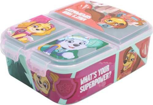 Originální a praktický box na svačinu s více přihrádkami, který si děti mohou s sebou vzít do školy, na hřiště nebo třeba na výlet. Multi box je vyroben z odolného materiálu, vydrží náhodné pády a nárazy při každodenním používání. Tři oddělené přihrádky jsou ideálním řešením pro svačinu o více chodech, které chcete uchovávat zvlášť. V jedné komoře můžete skladovat zdravou zeleninu či ovoce, do druhé připravíte chutný sendvič a do třetí schováte dětem něco dobrého na zub. Box je zdoben atraktivními motivy, děti si ho tak zamilují a rády si ho budou brát všude s sebou. Multi box je vhodný nejen pro ukládání jídla, poslouží i pro úschovu drobných hraček a malých dětských pokladů. Výhody:
