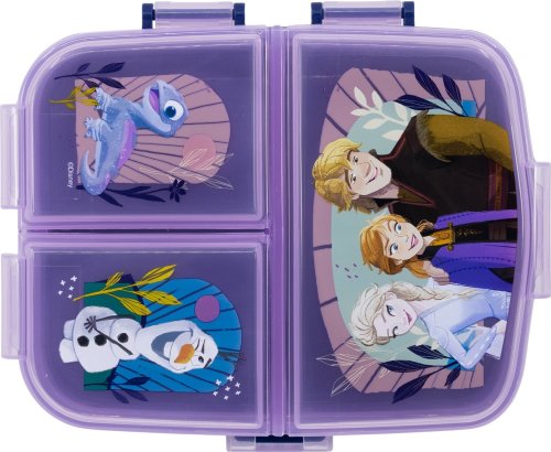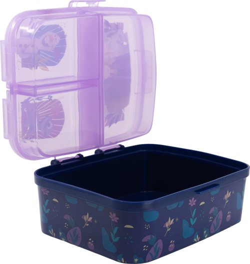 Originální a praktický box na svačinu s více přihrádkami, který si děti mohou s sebou vzít do školy, na hřiště nebo třeba na výlet. XL Multi box je vyroben z odolného materiálu, vydrží náhodné pády a nárazy při každodenním používání. Box má dvě patra - ve spodní části je jedna velká přihrádka, horní část je rozdělena na tři samostatně uzavíratelné přihrádky. Čtyři oddělené přihrádky jsou ideálním řešením pro svačinu o více chodech, které chcete uchovávat zvlášť. V jedné komoře můžete skladovat zdravou zeleninu či ovoce, do druhé připravíte chutný sendvič, ve třetí se najde místo třeba na kousek domácí bábovky a do čtvrté schováte dětem ovesnou tyčinku. Box je zdoben atraktivními motivy, děti si ho tak zamilují a rády si ho budou brát všude s sebou. XL Multi box je vhodný nejen pro ukládání jídla, poslouží i pro úschovu drobných hraček a malých dětských pokladů. Výhody: