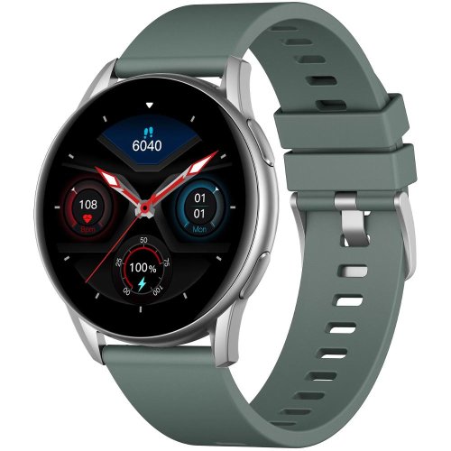 Unisex náramkové hodinky Napájení z baterie Průměr pouzdra 45,0 mm Pouzdro ve tvaru kruhu Kovové pouzdro Stříbrná barva pouzdra Zelená barva tahu Digitální ciferník Stopky Budík Další funkce BLUETOOTH