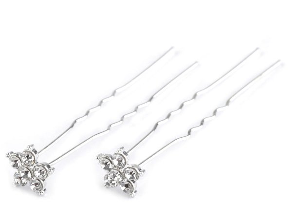 Elegantní štrasové vlásenky ve tvaru květu každý účes vyzdvihnou nejméně o dvě třídy výš. Skleněné broušené kamínky jsou zasazené do kovového lůžka. Na slunci i umělém světle se oslnivě třpytí. Vlásenky jsou z kvalitního, pevného kovu. Ozdobí nejen společenské účesy, ale i nevěsty v jejich velký den.