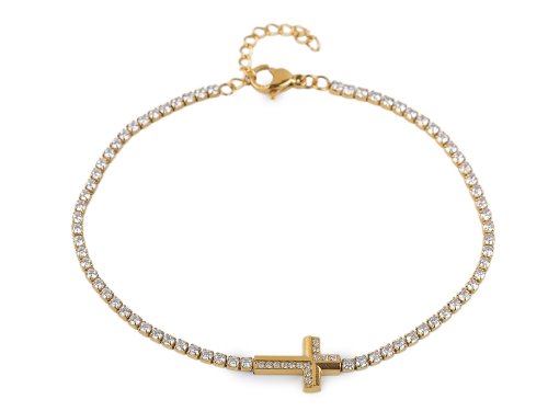 Náramek z nerezové oceli upoutá pozornost broušenými kamínky po celé délce a křížkem. Díky zapínání na karabinku a adjustačnímu řetízku je náramek snadno nastavitelný a dokonale se přizpůsobí vašemu zápěstí. Rozměry křížku jsou 10 x 15 mm.