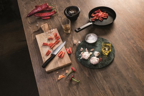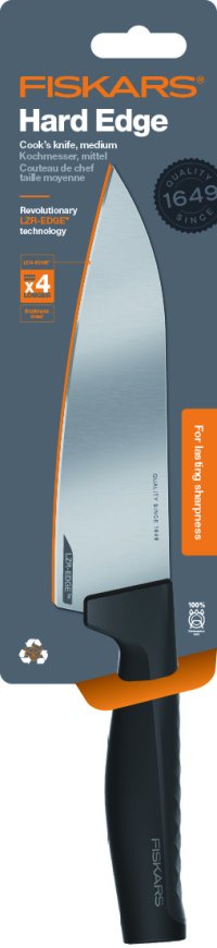 Praktický univerzální nůž střední velikosti je vhodný pro krájení všech potravin. Čepel nože je ze silné nerezové ocelové planžety. Ostří je zhotovené revoluční technologií LZR-EDGE. Ta umožňuje, aby nůž zůstal ostrý 4krát déle než standardní nože. Držadlo nože je ergonomicky tvarované s jedinečným 3D vzorem, který zajišťuje perfektní držení. Výška: 420 mm, délka: 25 mm, šířka: 90 mm, hmotnost: 100 g.